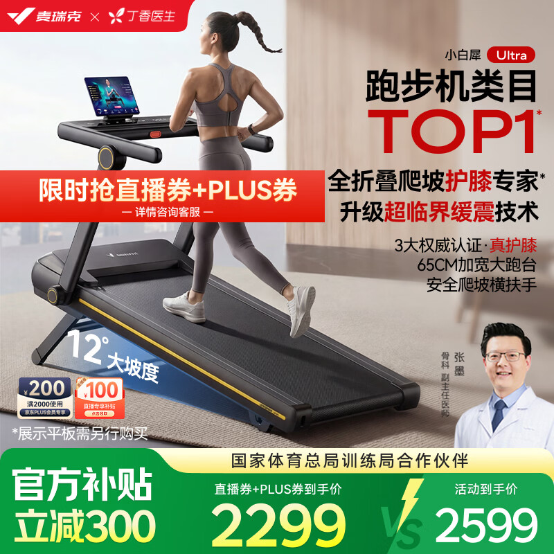 麦瑞克(MERACH)小白犀Ultra跑步机家庭用爬坡全折叠静音护膝走步健身房器材 新升级Ultra/太极超临界缓震/黑
