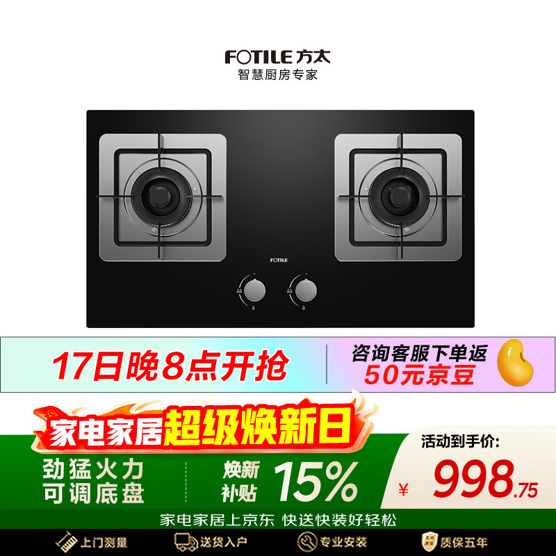 方太【推荐选购TF27新品灶】燃气灶天然气家用嵌入式 可调节换装灶具 5.0kW*猛火燃气灶 TH32B
