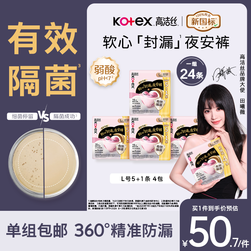 高洁丝【有效隔菌】软心夜安裤L号24条裤型卫生巾经期深睡安睡裤自营