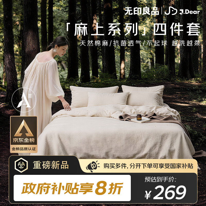无印良品×JDear京东联名 麻上系列天然棉麻四件套A类抗菌床单被套被套200*230cm1.5米床原麻色