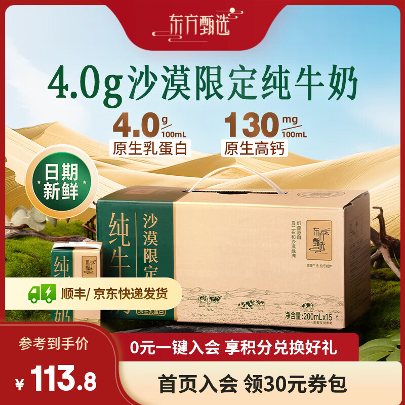 东方甄选4.0蛋白沙漠奶源纯牛奶3月生产全脂营养早餐盒装整箱送礼 【2箱装 共30盒】4.0沙漠牛奶 200mL*15盒 /箱