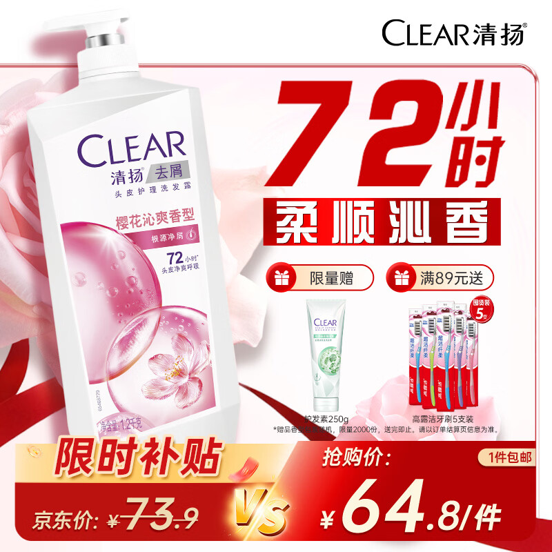 清扬女士去屑洗发水 樱花沁爽1.2kg烟酰胺净屑止痒留香洗头膏热门商品