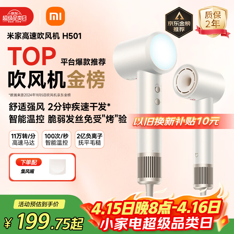 米家高速吹风机H501 家用小米吹风机智能温控速干恒温负离子吹风筒静音护发 送女友生日礼物配风嘴