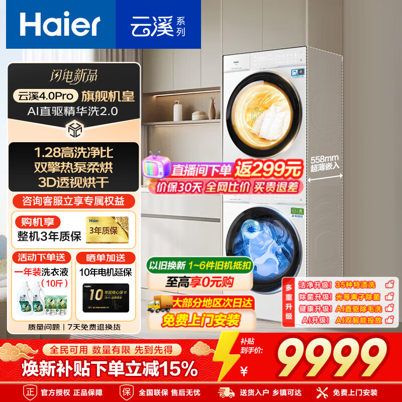 海尔(Haier)云溪4.0系列77E/58E/576洗烘套装10KG家用超薄洗衣机热泵烘干衣机组合 家电以旧换新补贴15%送货上门 王炸新品 |云溪4.0Pro套装75DW 10公斤
