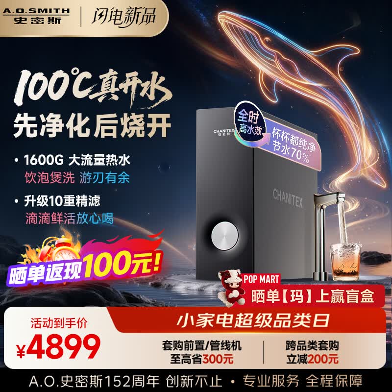 史密斯(A.O.SMITH)佳尼特加热净水器 蓝鲸净热2.0 Ultra直饮一体机厨房专用台下用净水机 冠军之选 CDR2000S2
