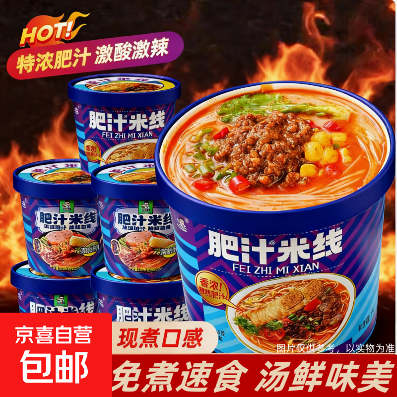 港式肥汁米线螺蛳粉米粉米线方便面泡面速食宵夜桶装冲泡155g/桶 【6桶】肥汁米线