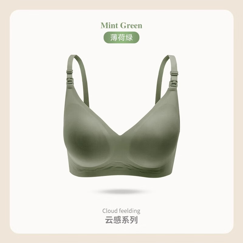 ROVO哺乳内衣怀孕期聚拢无痕舒适喂奶透气孕妇文胸孕哺胸罩 薄荷绿【聚拢防下垂 送延长扣】 L