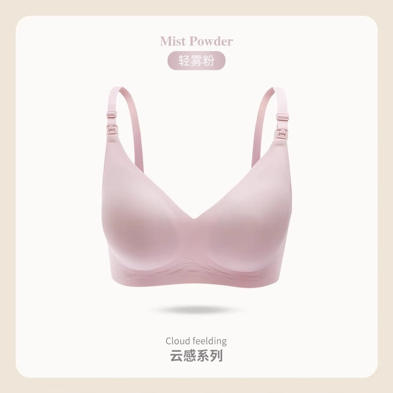 ROVO哺乳内衣怀孕期聚拢无痕舒适喂奶透气孕妇文胸孕哺胸罩 轻雾粉【聚拢防下垂 送延长扣】 L
