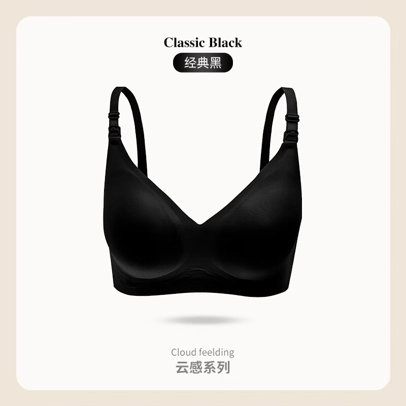ROVO哺乳内衣怀孕期聚拢无痕舒适喂奶透气孕妇文胸孕哺胸罩 经典黑【聚拢防下垂 送延长扣】 L