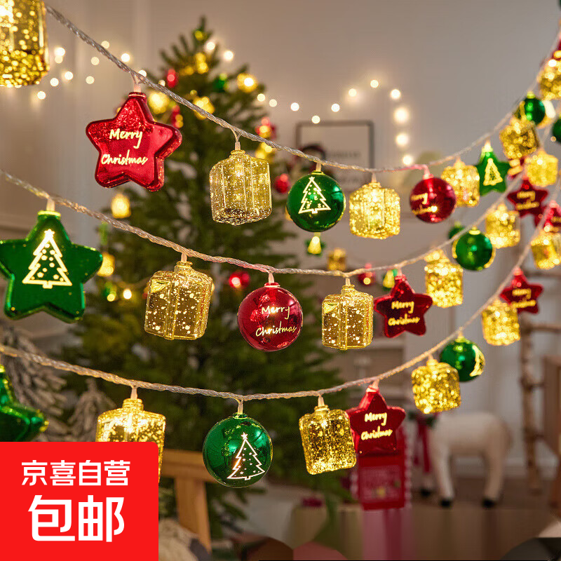 户外露营灯led树灯串圣诞老人雪人装饰灯电镀五角星电池小彩灯闪 2025新品-圣诞礼盒混搭款 3米20灯-USB款-常亮