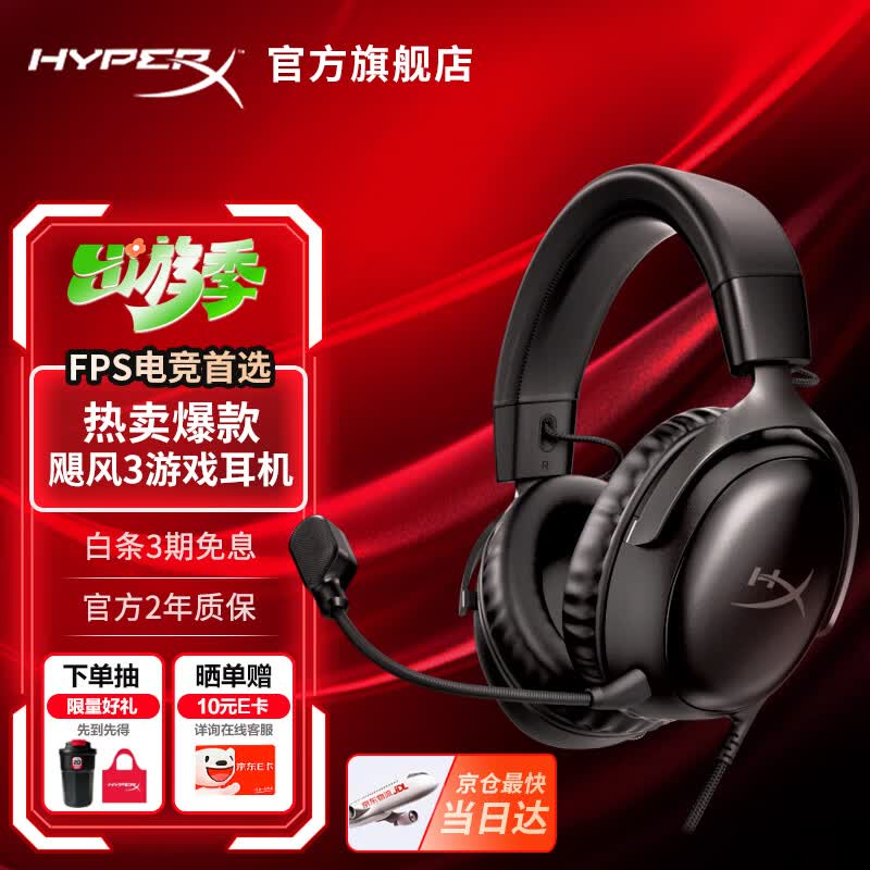 极度未知(HYPERX)飓风2升级款飓风3 头戴式游戏电竞耳机电脑耳麦 吃鸡游戏耳机 适配三角洲行动 【飓风3黑色】全新升级丨DTS音效 头戴式游戏耳机