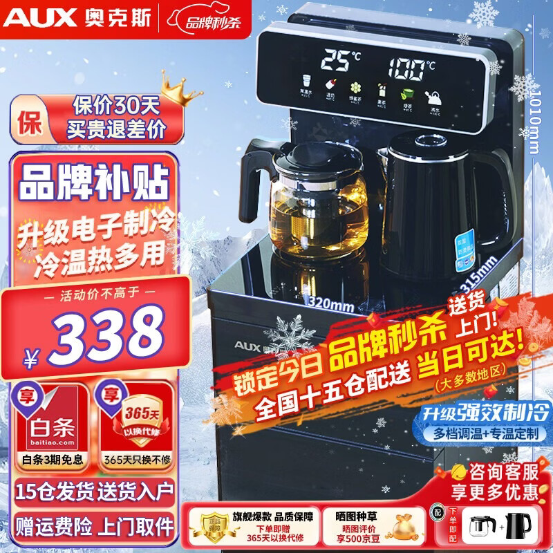 奥克斯(AUX)茶吧机家用多功能智能遥控大屏双显立式下置式饮水机 升级加厚侧板 多档调温 彩屏双显丨加厚侧板丨 制冷制热型