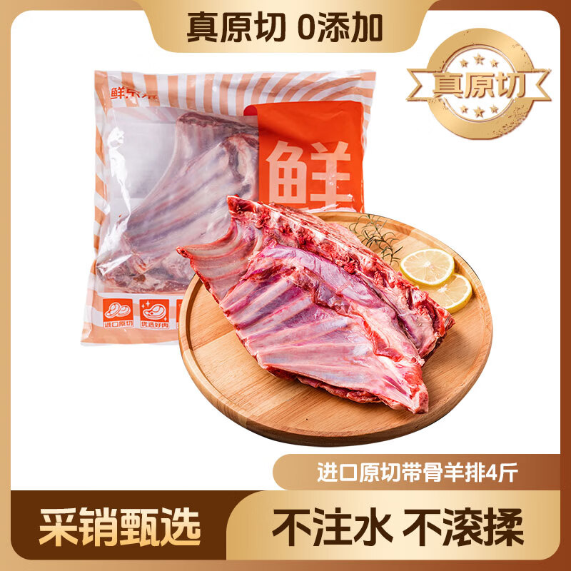 鲜京采 新西兰原切带骨羊排净重4斤/袋【偏肥】 羊肉烧烤 京东自有品牌