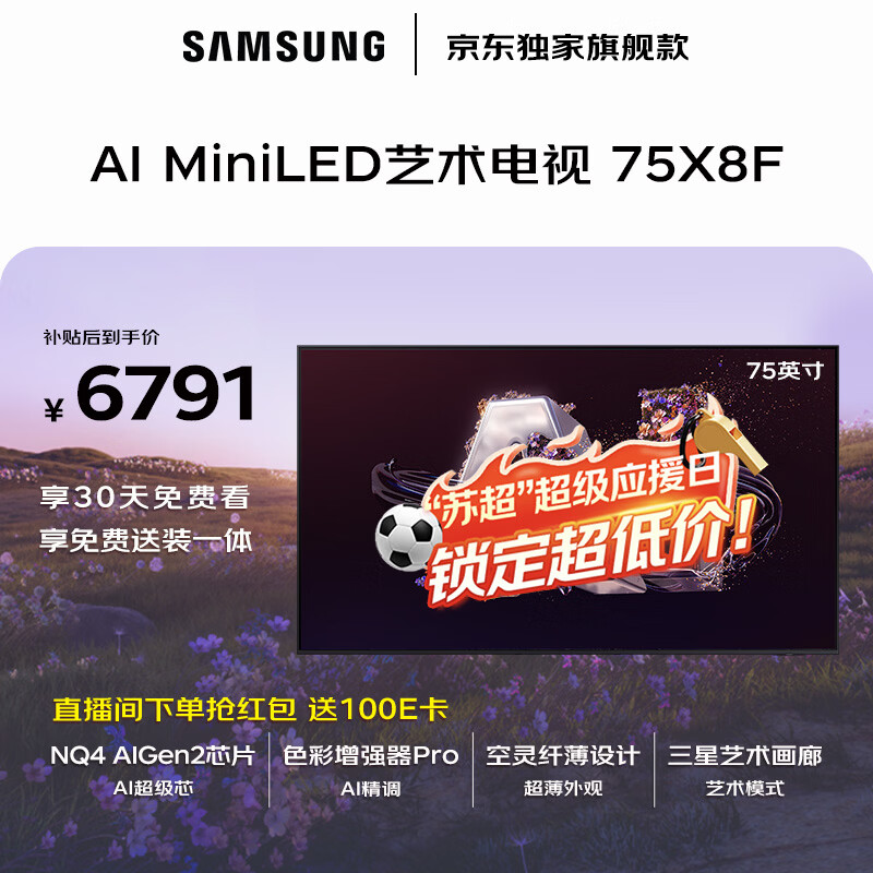 三星电视 75X8F 75英寸 量子点 AI Mini LED艺术电视 壁纸电视 超薄平嵌144Hz QA75QNX8FAJXXZ