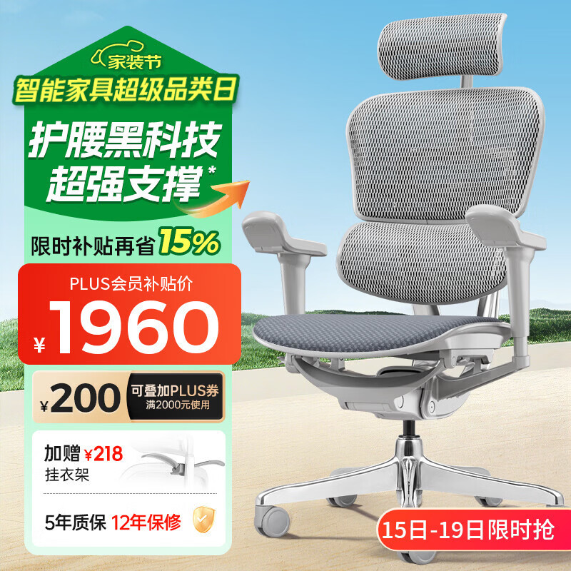 Ergonor保友金豪b雄鹰 人体工学椅 电脑椅 电竞椅办公椅子可躺老板椅 【金豪b雄鹰】银白网(云感科技坐垫)