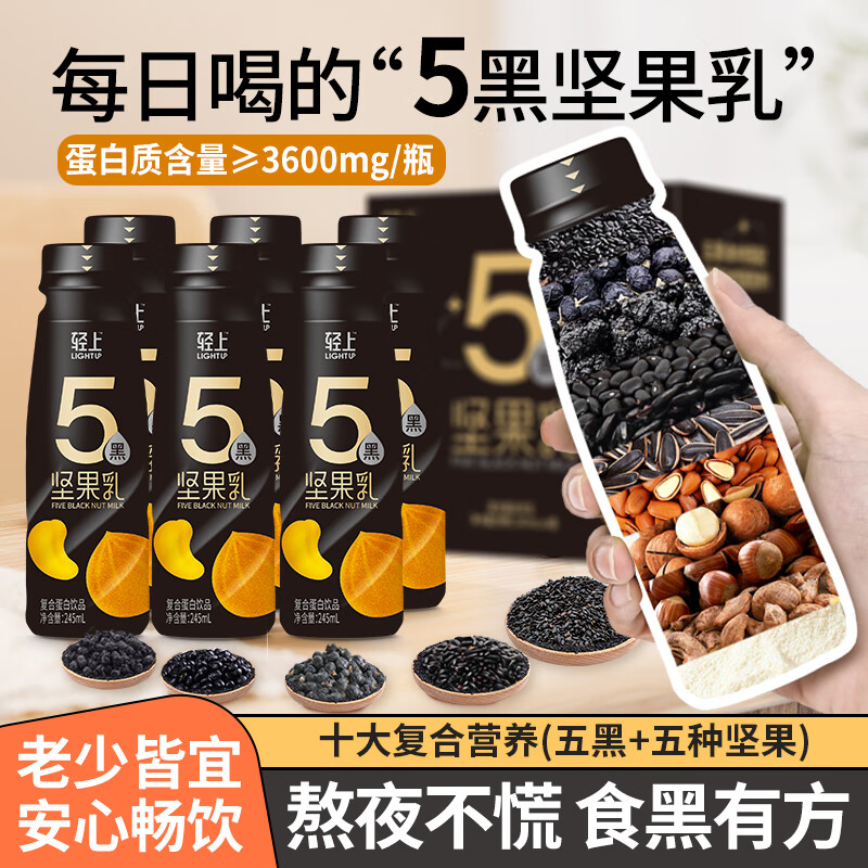 轻上【年货礼盒】轻上椰汁0糖生椰1L大瓶东南亚进口椰子汁饮料整箱 轻上五黑坚果乳245ml*6瓶