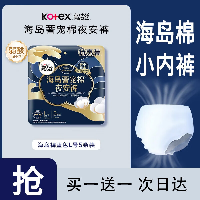 高洁丝【品牌直供】夜安裤裤型卫生巾安睡裤安心裤超长夜用姨妈巾防漏 L 5片 【海岛系列】100-140斤 默认