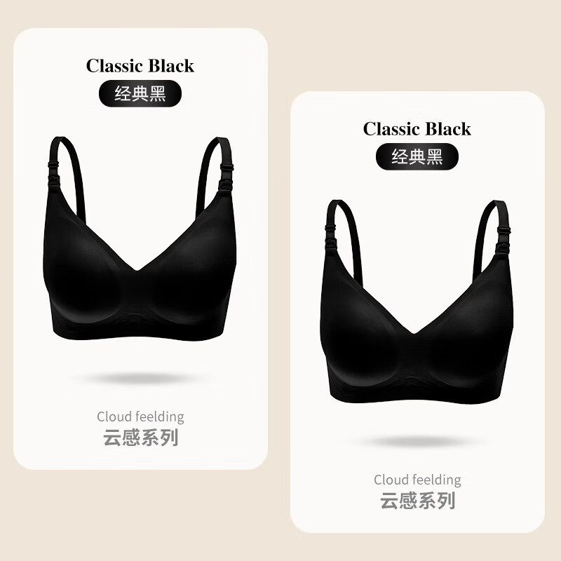 ROVO哺乳内衣怀孕期聚拢无痕舒适喂奶透气孕妇文胸孕哺胸罩 经典黑+经典黑【聚拢防下垂 送延长扣】 L