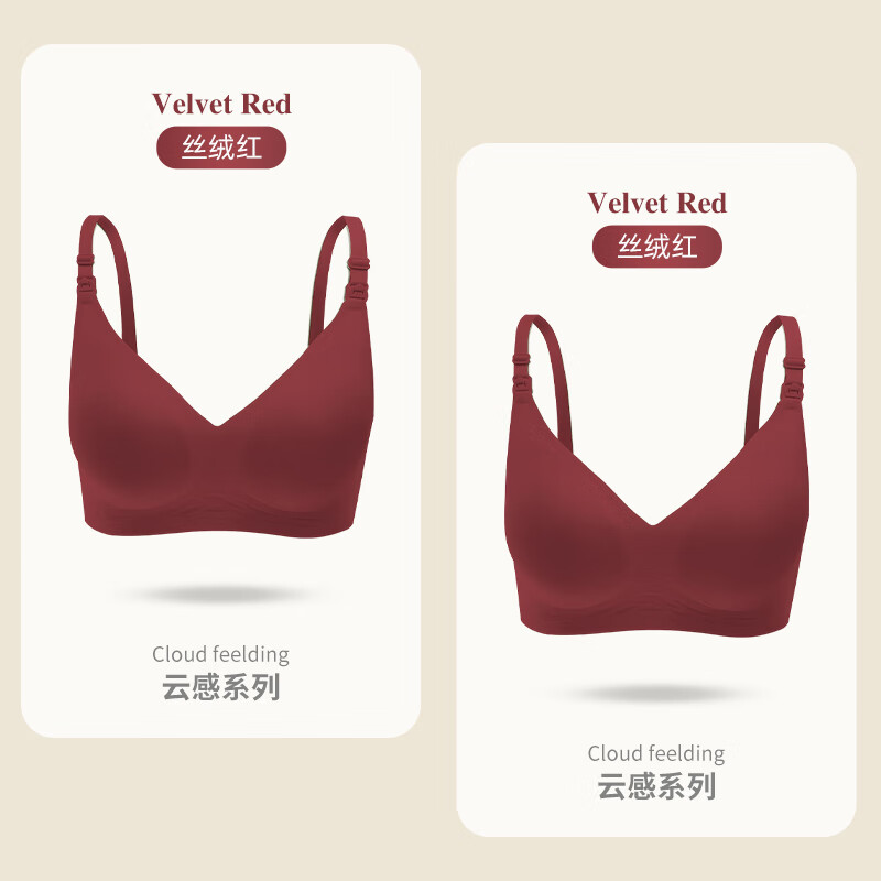 ROVO哺乳内衣怀孕期聚拢无痕舒适喂奶透气孕妇文胸孕哺胸罩 丝绒红+丝绒红【聚拢防下垂 送延长扣】 S