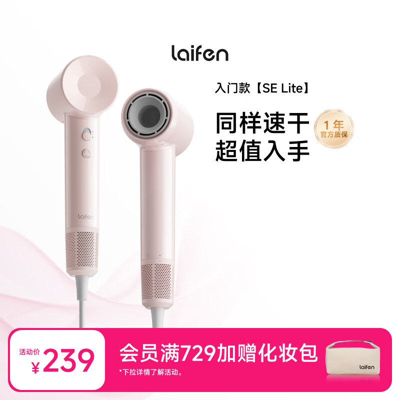 徕芬Laifen SE Lite 家用入门款高速吹风机 莱芬大风力速干低噪学生宿舍便携风筒 SE lite粉色