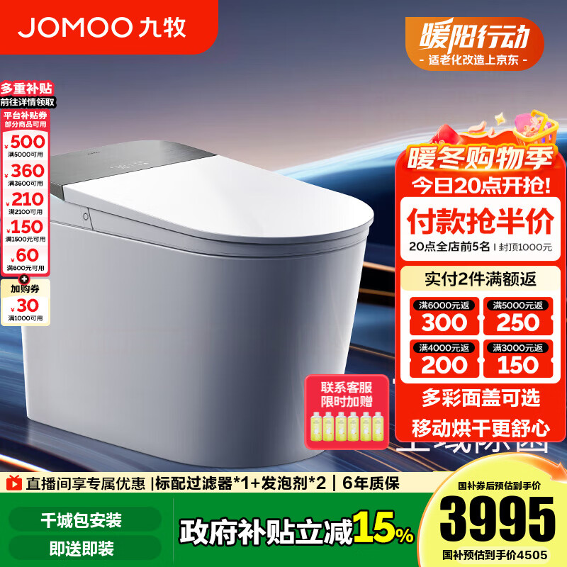 九牧(JOMOO)净界智能马桶S8家用马桶感应翻盖除臭虹吸坐便器零压限制除菌除臭 【净界Pro-ZS800J】多彩面盖可选+移动烘干 坑距是290-390选305