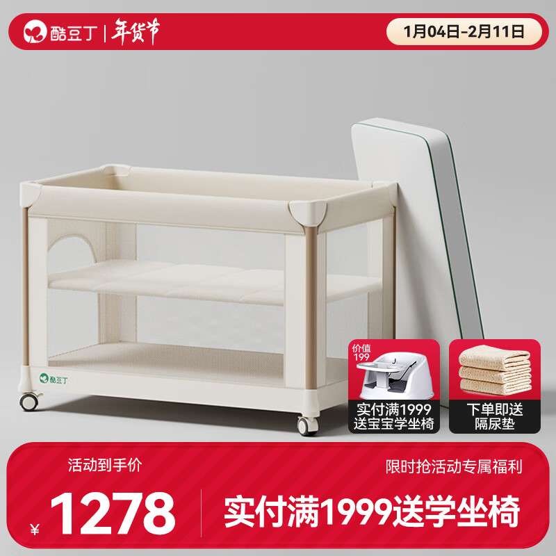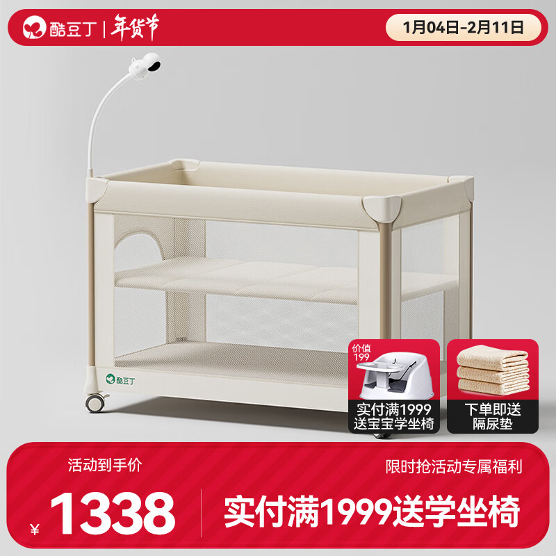 酷豆丁婴儿床多功能智能折叠拼接大床便携可移动新生婴儿床宝宝床 智能基础款