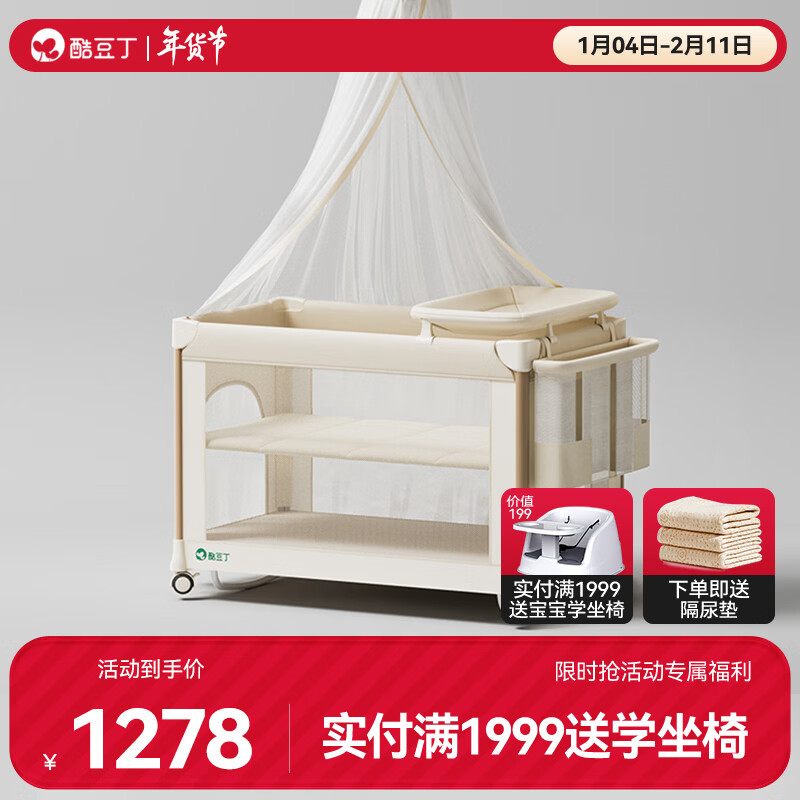 酷豆丁婴儿床多功能智能折叠拼接大床便携可移动新生婴儿床宝宝床 奶咖色旗舰款