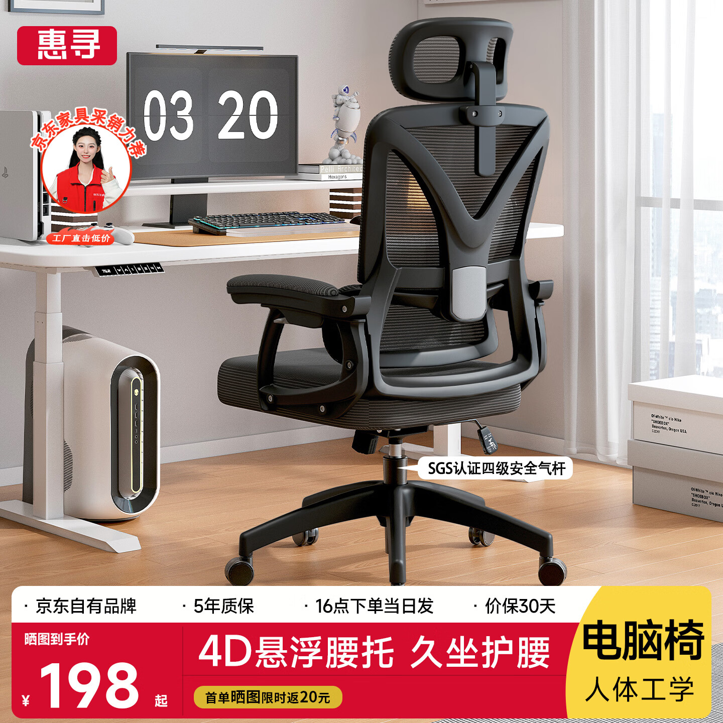 惠寻电脑椅电竞椅子人体工学游戏人工力学座椅久坐宿舍学习可躺办公椅 【Pro焕新】悬浮撵腰+4级气杆+黑框黑