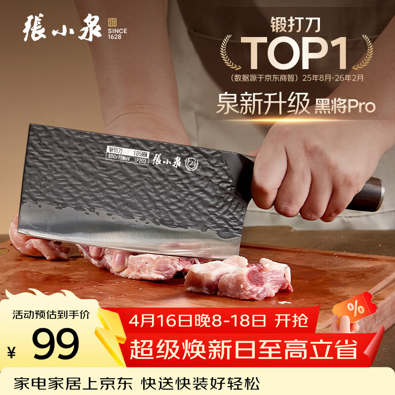 张小泉黑将pro不锈钢锤纹厨房家用刀具 切菜刀 兰颂斩切刀【京东限定】