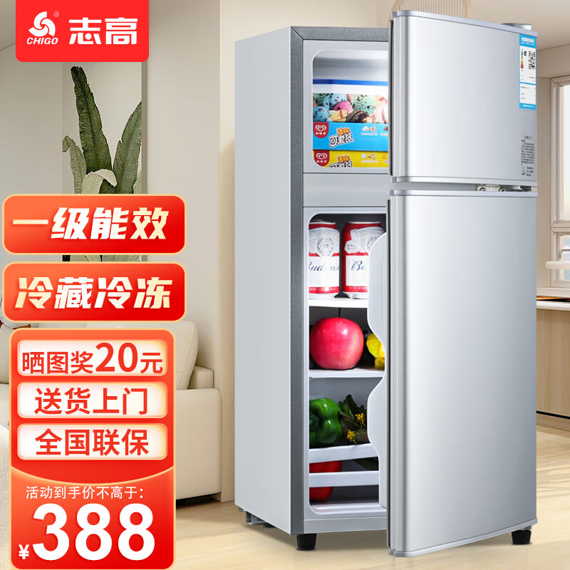志高(CHIGO)小冰箱迷你小型家用冷藏冷冻两用宿舍出租房用双门办公室电冰箱节能省电 【一级能效】76L银色【全国联保丨节能省电】