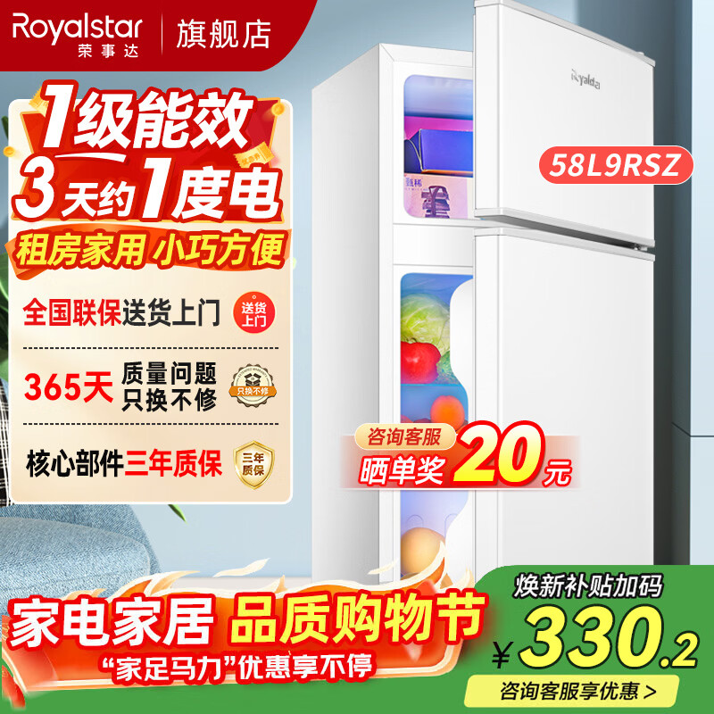 荣事达(Royalstar)小冰箱小型家用出租房双门一级能效宿舍冷藏冷冻两用节能电冰箱 58L9RSZ【一级能效】【三天不到1度电】白