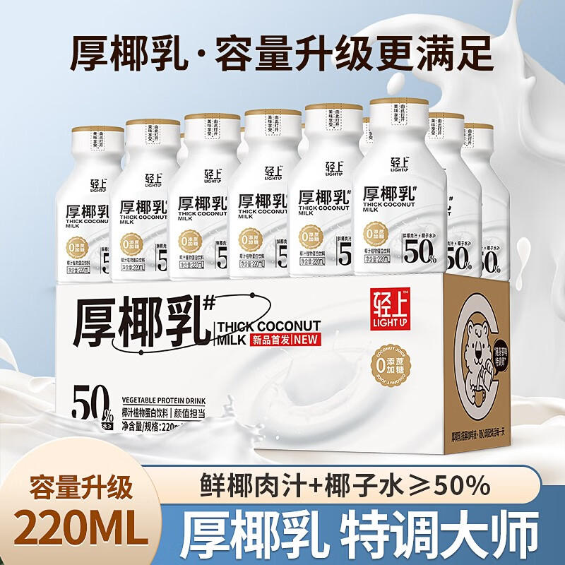轻上【年货礼盒】轻上椰汁0糖生椰1L大瓶东南亚进口椰子汁饮料整箱 0糖生椰(原味)220ml*10瓶