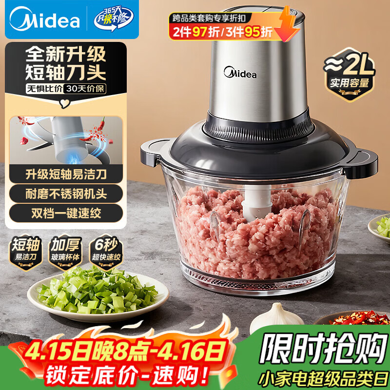 美的(Midea)绞肉机家用多功能小型电动家用搅拌绞肉绞菜馅机料理碎肉玻璃全自动打蒜器大容量JC16