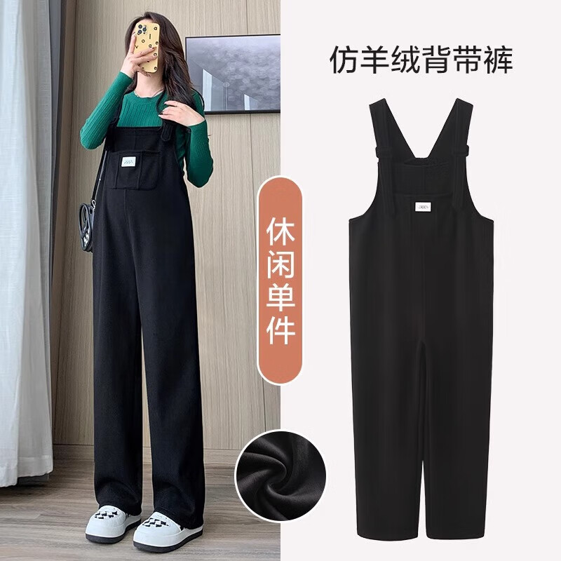米度丽孕妇背带裤套装秋冬加绒加厚孕妇裤子冬季外穿阔腿裤秋季长裤冬装 黑色背带裤-加绒 M码(建议80-110斤左右)