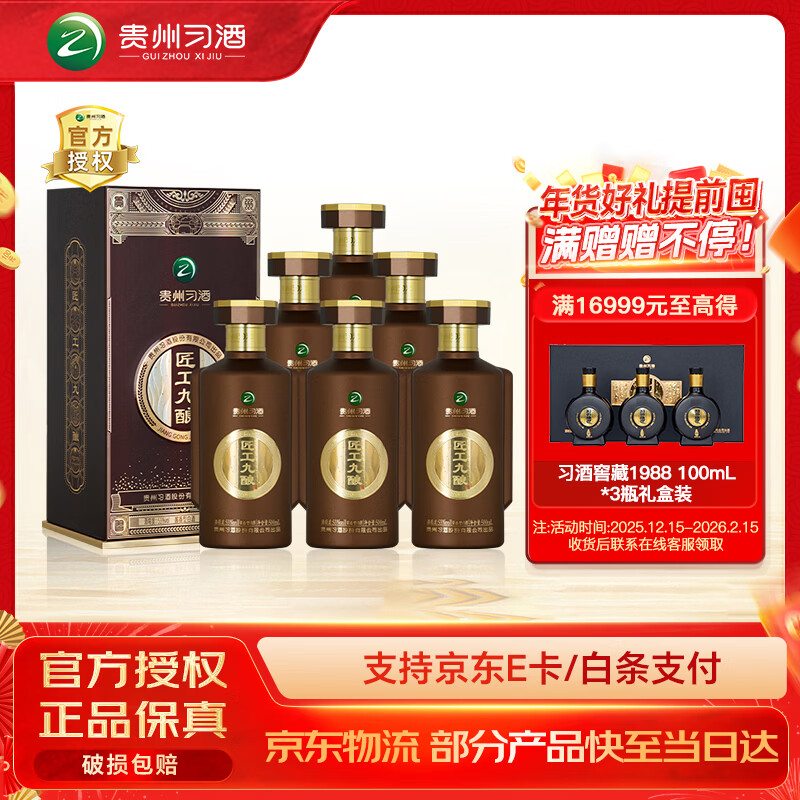 习酒 【习酒官方授权】贵州习酒 酱香型白酒 礼品送礼收藏 53度 500mL 6瓶 匠工九酿 整箱装