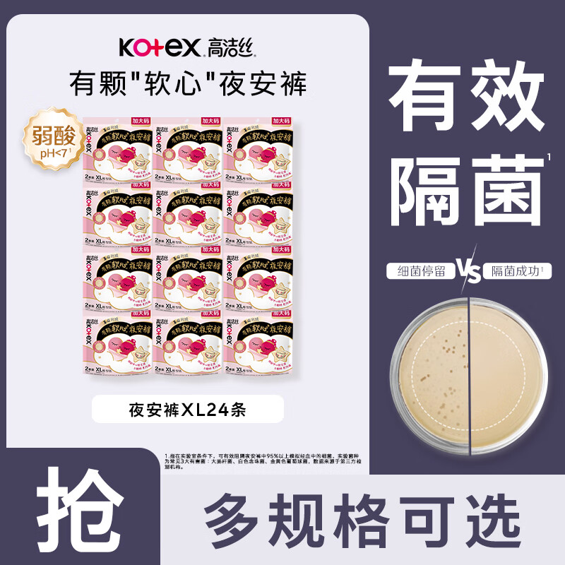 高洁丝【品牌直供】夜安裤裤型卫生巾安睡裤安心裤超长夜用姨妈巾防漏 XL 24条 120-170斤 默认