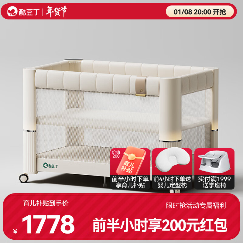 酷豆丁云朵智能哄睡婴儿床折叠拼接大床可移动新生婴儿床宝宝床床 云朵床