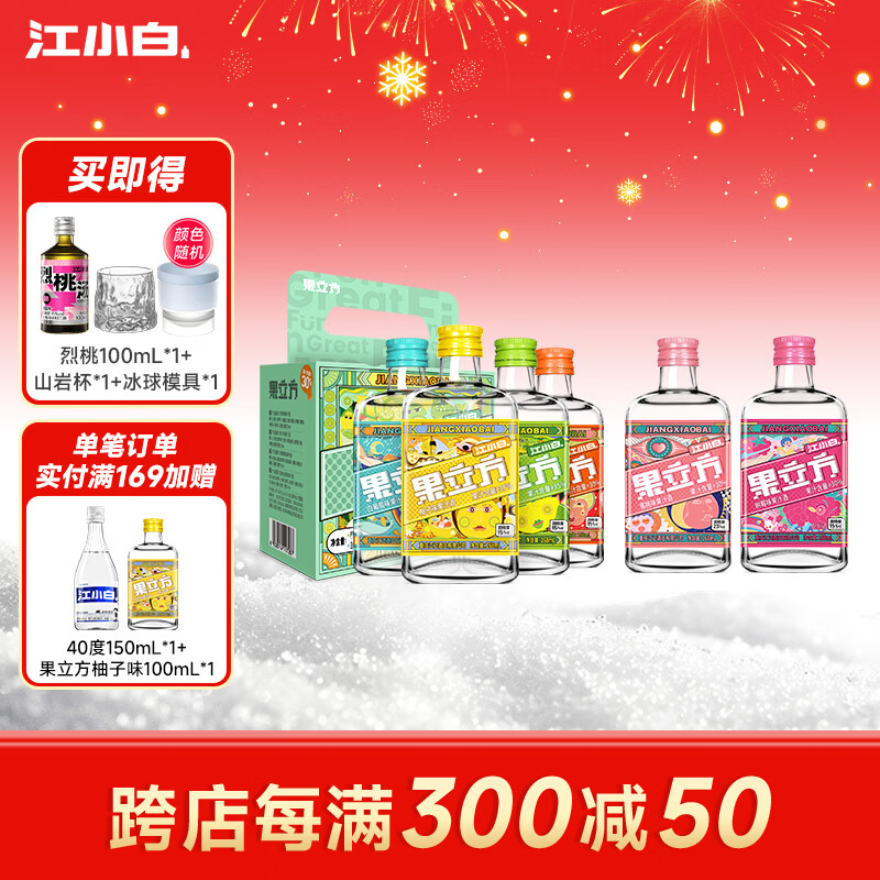 江小白果立方果汁酒15-23度果酒树莓味蜜桃味 低度微醺水果酒节日送礼 混合口味 168mL 6瓶 (果立方6口味)