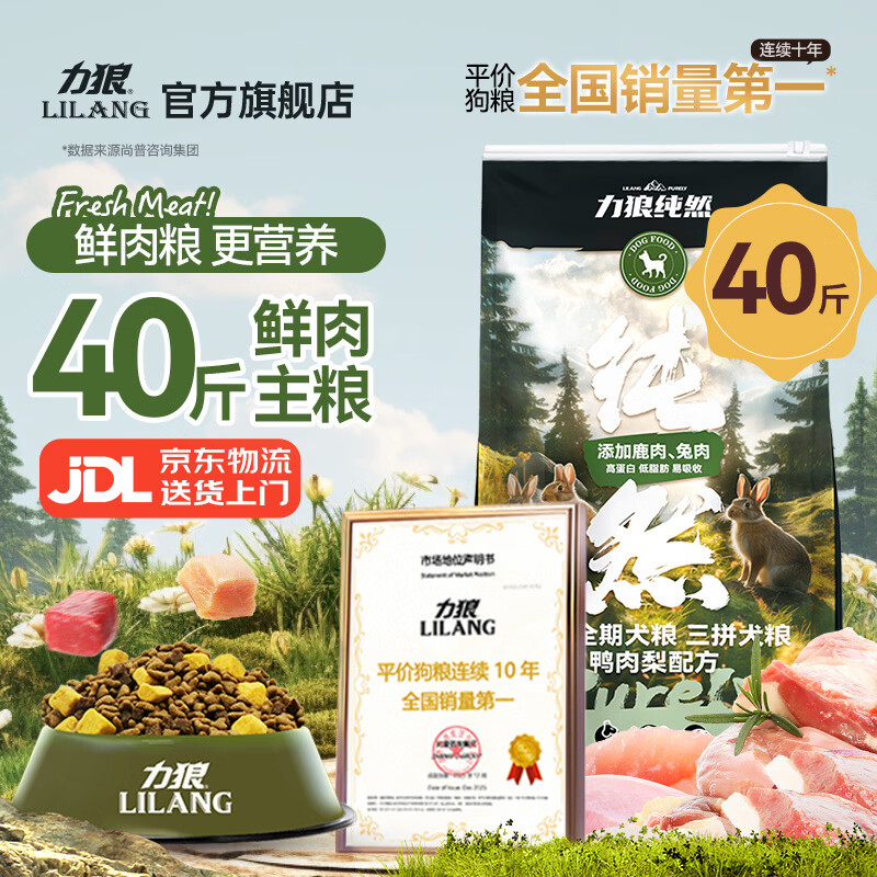 力狼狗粮 纯然金毛阿拉斯加40拉布拉多萨摩耶马犬德牧中大型犬粮 鸭肉梨|肉粒三拼|鲜肉犬粮40斤