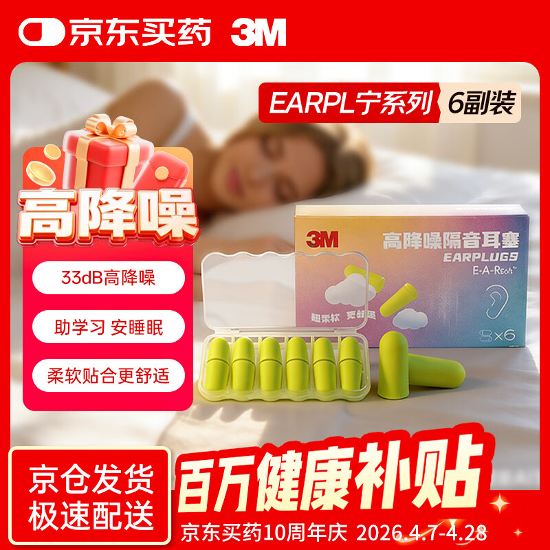 3M宁系列高降噪隔音学习防吵睡眠超柔软防噪音耳塞听力防护 6副/盒