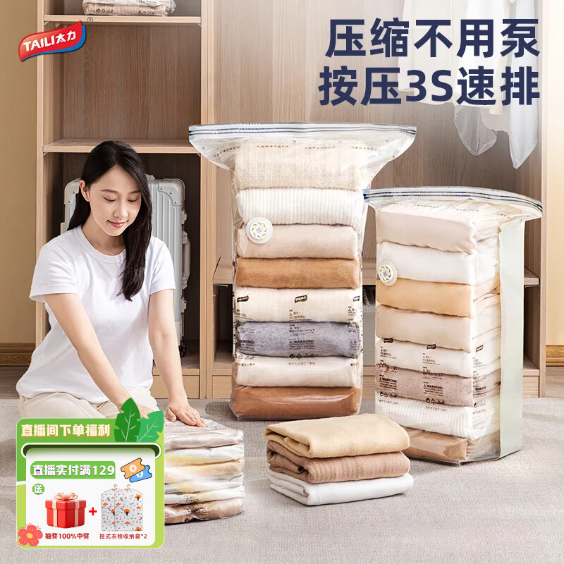 太力真空压缩收纳袋衣服旅行袋免抽气衣物密封整理袋【6中立体】