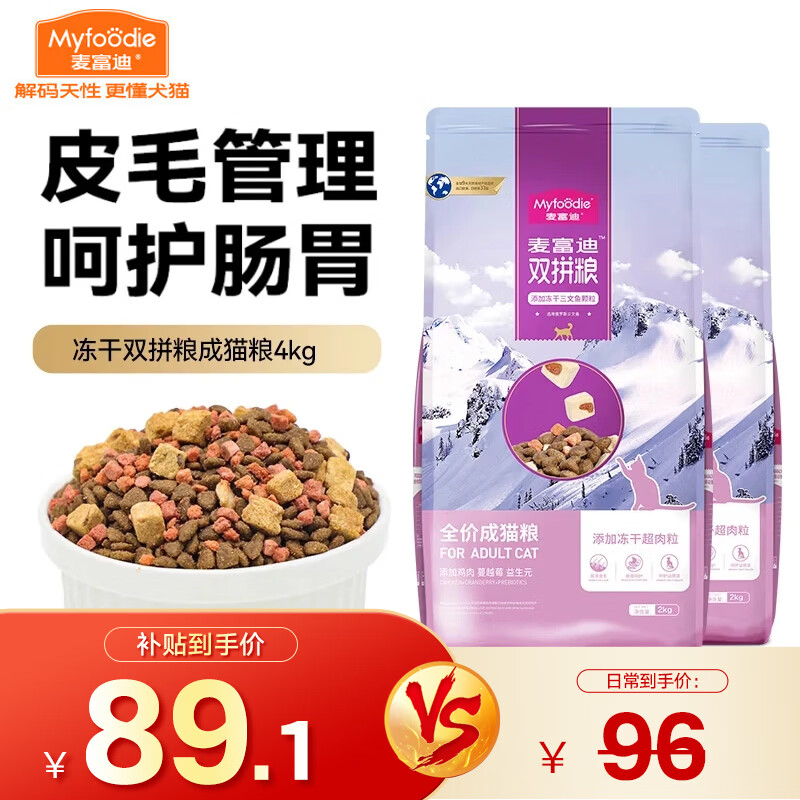 麦富迪 冻干猫粮 超肉粒冻干双拼粮(冻干三文鱼) 成猫4kg