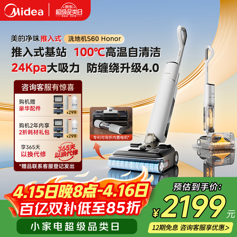 美的(Midea)推入式净味洗地机S60honor【2.5h快充 24Kpa大吸力 全向助力】洗拖吸一体全自动清洗拖地扫地机