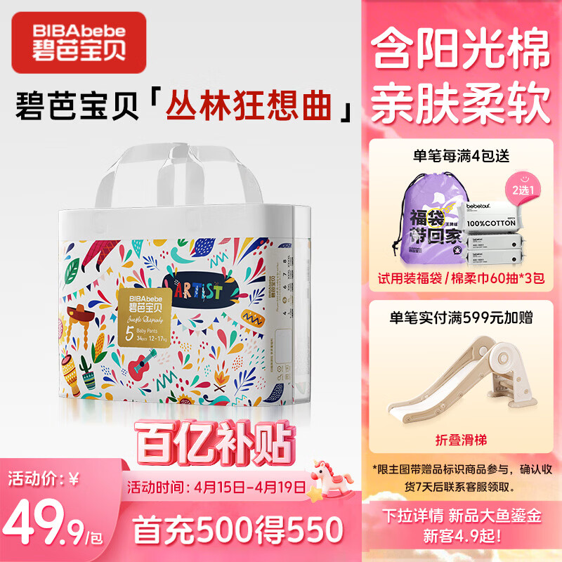 碧芭宝贝丛林狂想曲拉拉裤XL码34片(12-17kg)学步裤超薄 亲肤不闷