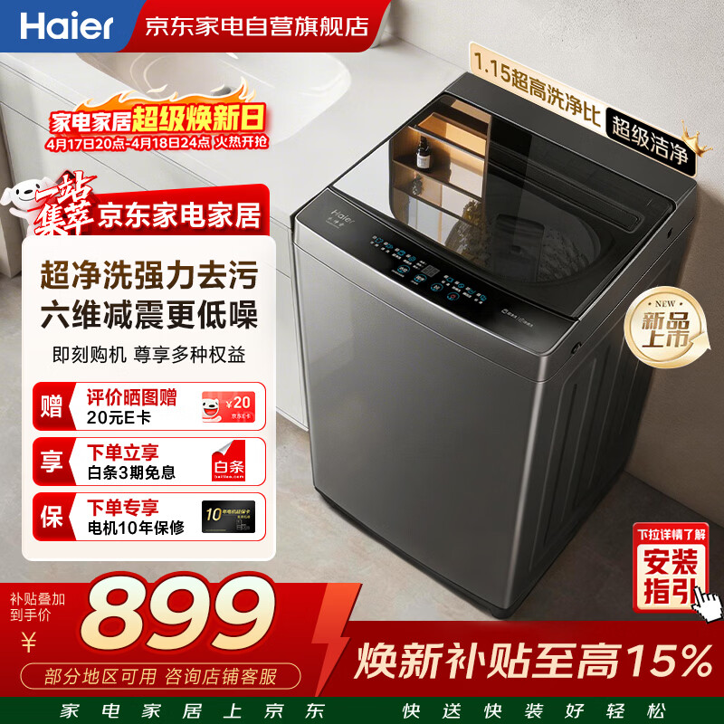 海尔波轮洗衣机全自动10KG家用大容量 新品上市 一级能效 超净洗除螨洗 六维减震 桶自洁XQB100-M10A0