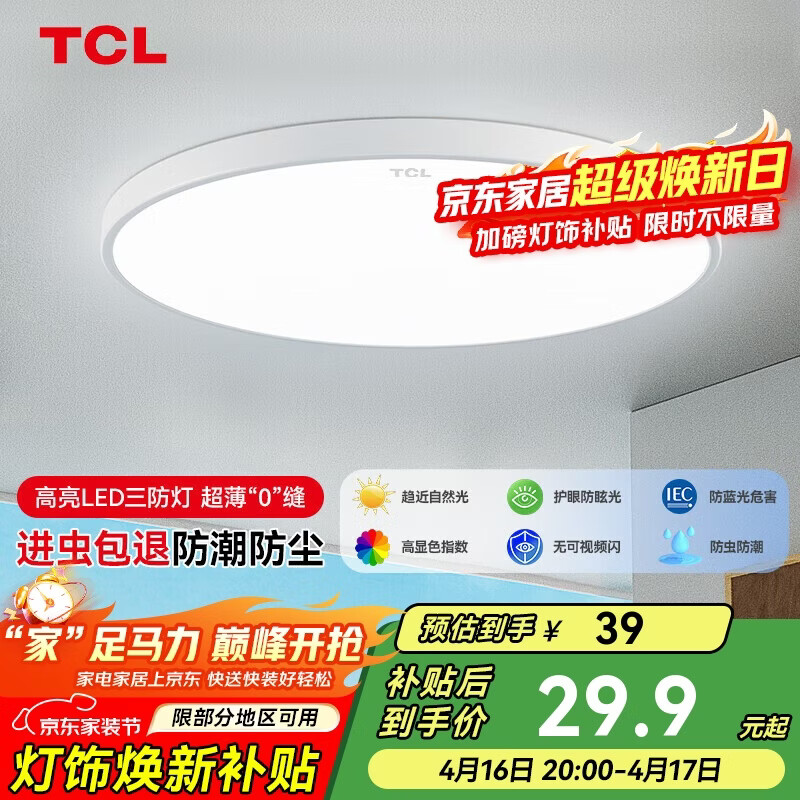 TCL吸顶灯led卧室灯全屋灯具套餐阳台餐厅现代简约三防灯24W白光