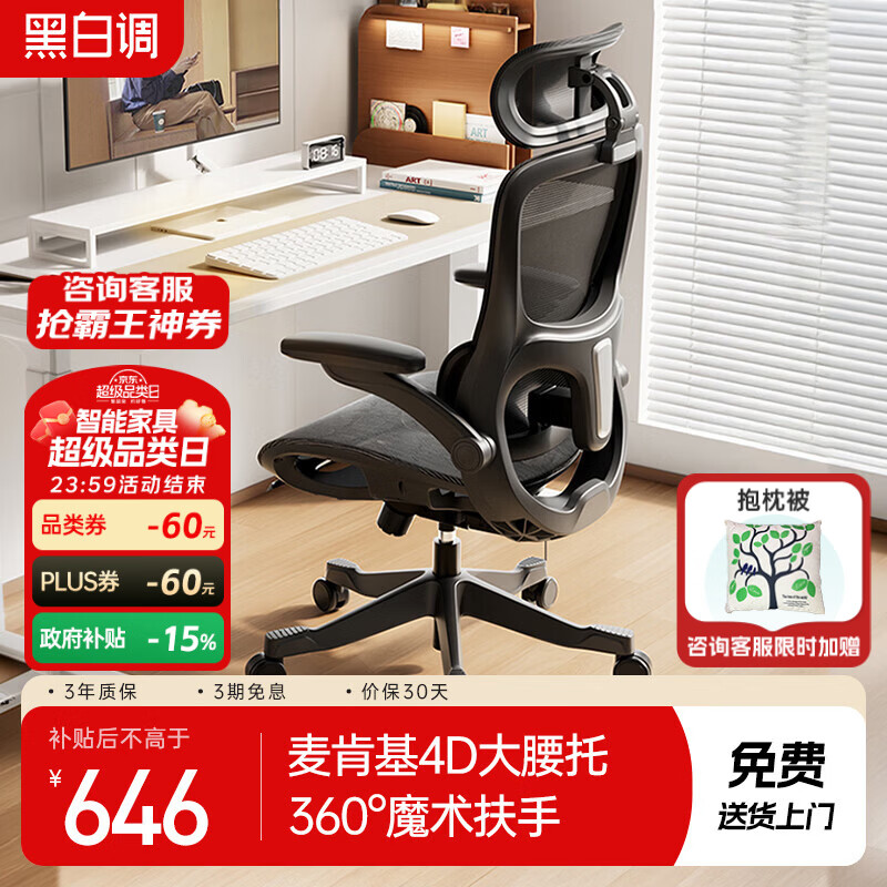 黑白调P2Pro+二代人体工学椅电脑椅办公电竞椅子人工力学座椅可坐深调节