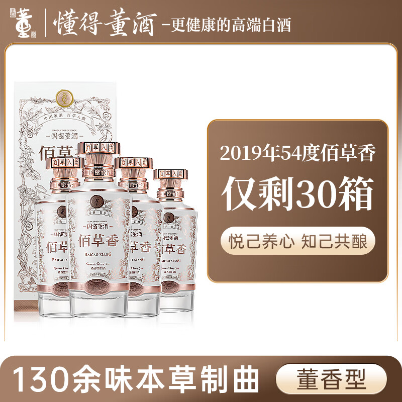 董酒佰草香 董香型白酒 高端礼赠 收藏摆柜 国密工艺 手工酿造 54度 500mL 4瓶 整箱2019产
