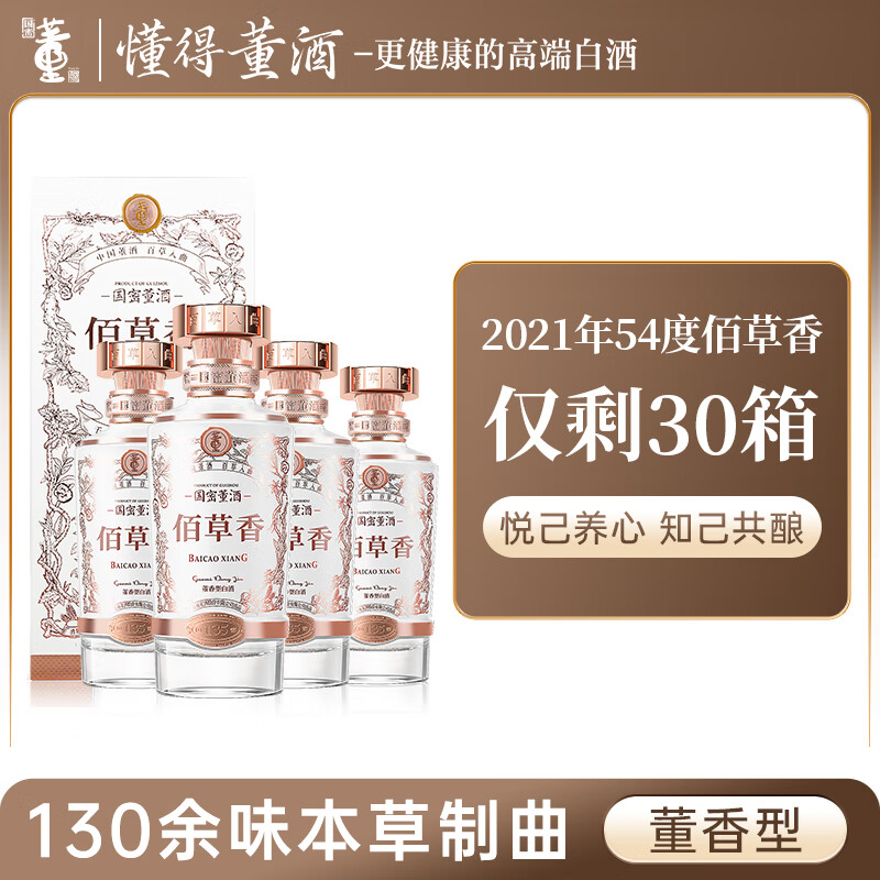 董酒佰草香 董香型白酒 高端礼赠 收藏摆柜 国密工艺 手工酿造 54度 500mL 4瓶 整箱2021产