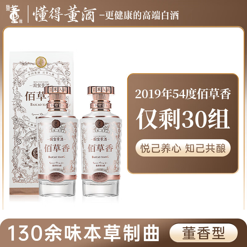 董酒佰草香 董香型白酒 高端礼赠 收藏摆柜 国密工艺 手工酿造 54度 500mL 2瓶 2019产